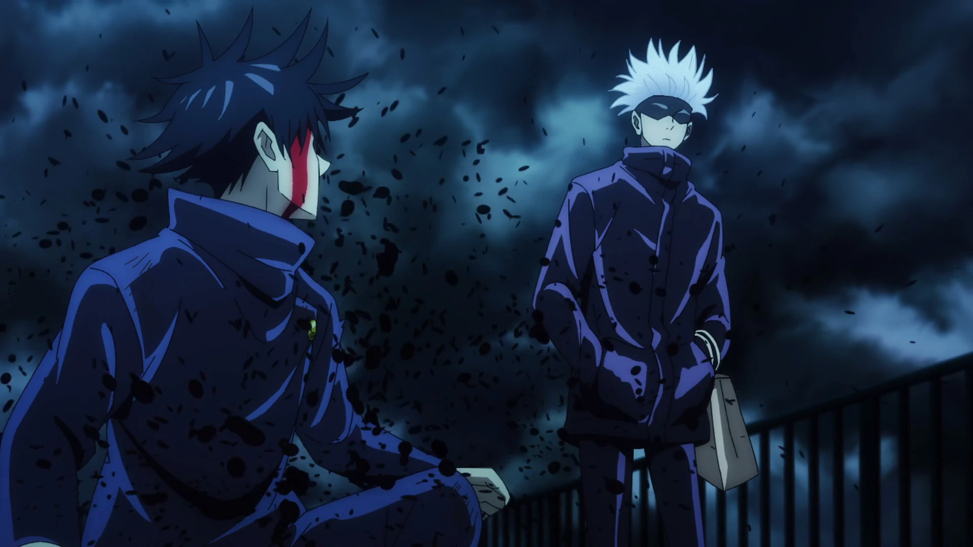 Gojo entabla una breve conversación con su alumno, Megumi y le da la espalda a Itadori. Sukuna salta detrás de Sotaru y Megumi le advierte sobre la emboscada.