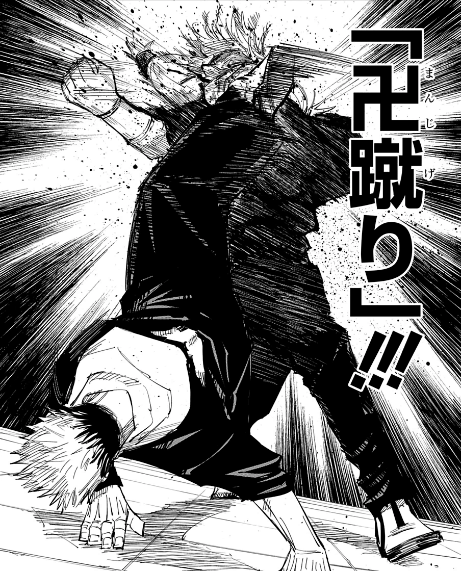 L'impulsion de la chute, effectuée en déplaçant son centre de gravité, donne des frappes d'autant plus puissante. [ 2] Yuji Itadori , grâce au Fléchissement des Genoux , relâche non seulement ses genoux mais aussi les articulations de ses hanches et de ses épaules pour se glisser au niveau des pieds de son adversaire de façon plus souple que s'il s'était jeté par terre. En étant aussi près du sol, il peut lui administrer un coup de pied de toute ses forces. [ 3] Ce mouvement fut notamment efficace face à Mahito . [ 4]