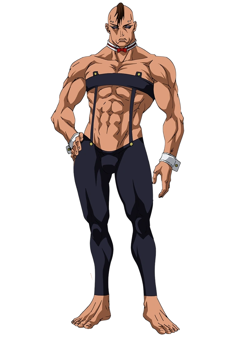 Eso arbore une tenue très révélatrice qui comprend un col rayé avec un nœud papillon, des bandes blanches autour de ses poignets et une bande autour de sa poitrine qui maintient, dans le manga, des bretelles reliées à un string et des leggings. Dans l'anime, Eso porte un collant. Il prétend que ce choix de tenue est adapté au visage sur son dos car sinon il transpire. [7]