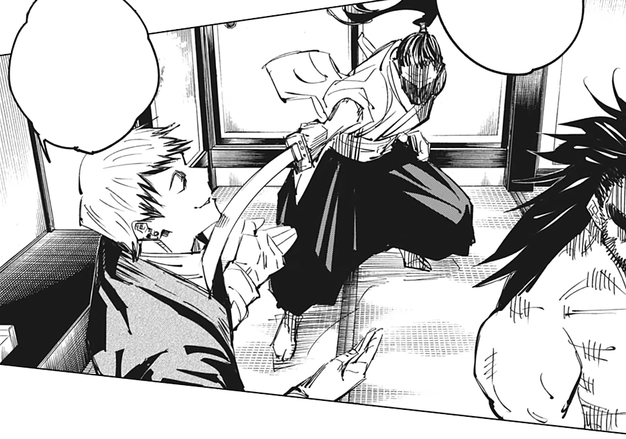Оги носит традиционную одежду клана Зенин — это обычно длинная кимоно или хаори с характерными узорами и символами клана. Его наряд выполнен из качественных тканей, зачастую темных оттенков с золотыми или серебряными акцентами.