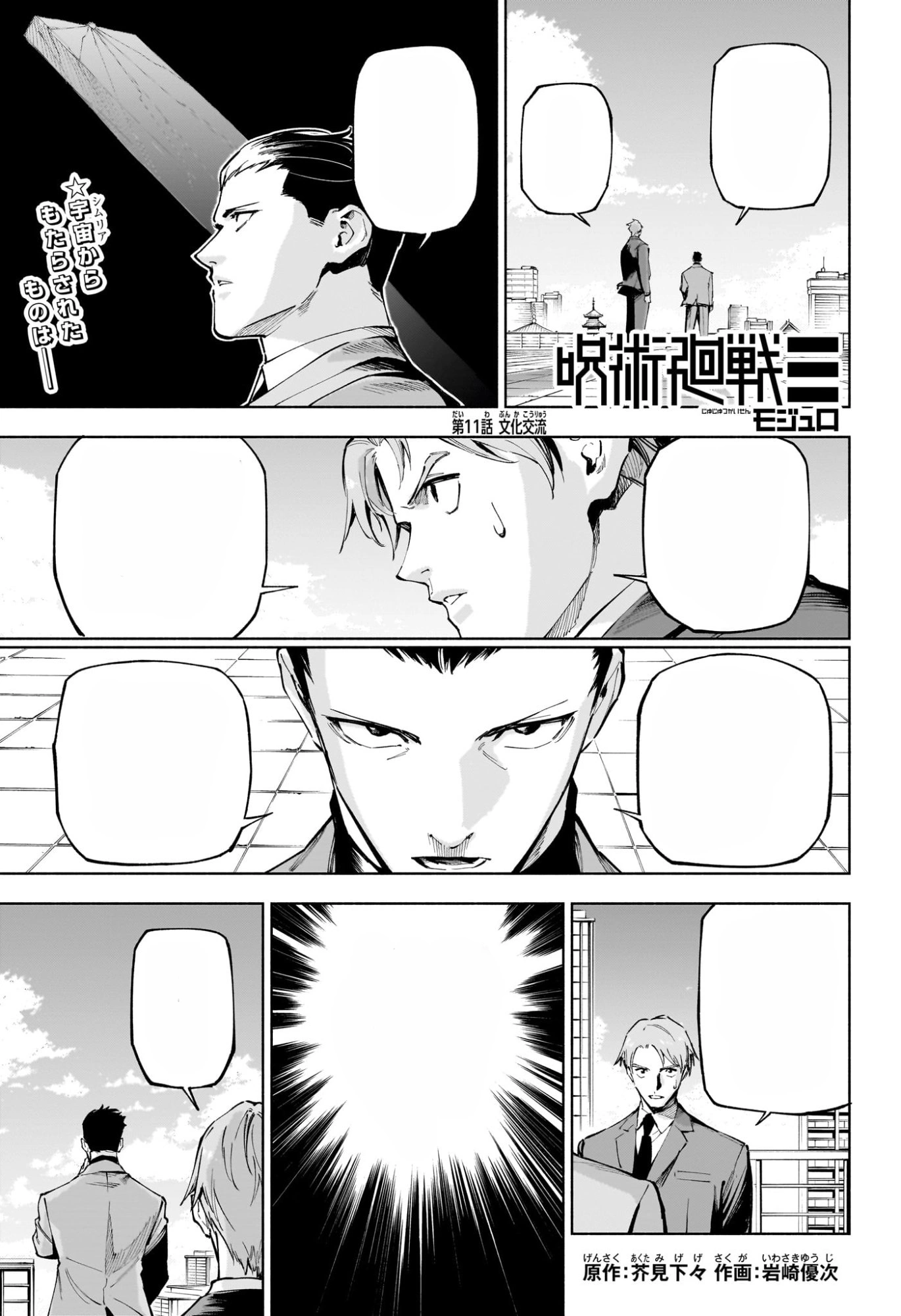 Later, at Kyoto Jujutsu High, nutritionist Kyoko Tomoe is surprised to learn she will not be preparing the main course, as the representatives plan to cook their own takoyaki party-style. Tsurugi presents a wancha octopus for the Simurians' dish, leaving Kyoko baffled despite Maru's explanation. Meanwhile, Jabaloma informs Usami that the Deskunte chieftain placed a curse on Dabura's sister that will kill her if the chief dies or Dabura betrays him, though they may now be beyond its effective range. Usami tells them about the Black Rope, a cursed tool capable of nullifying cursed techniques, and promises to obtain it, earning Dabura's gratitude.